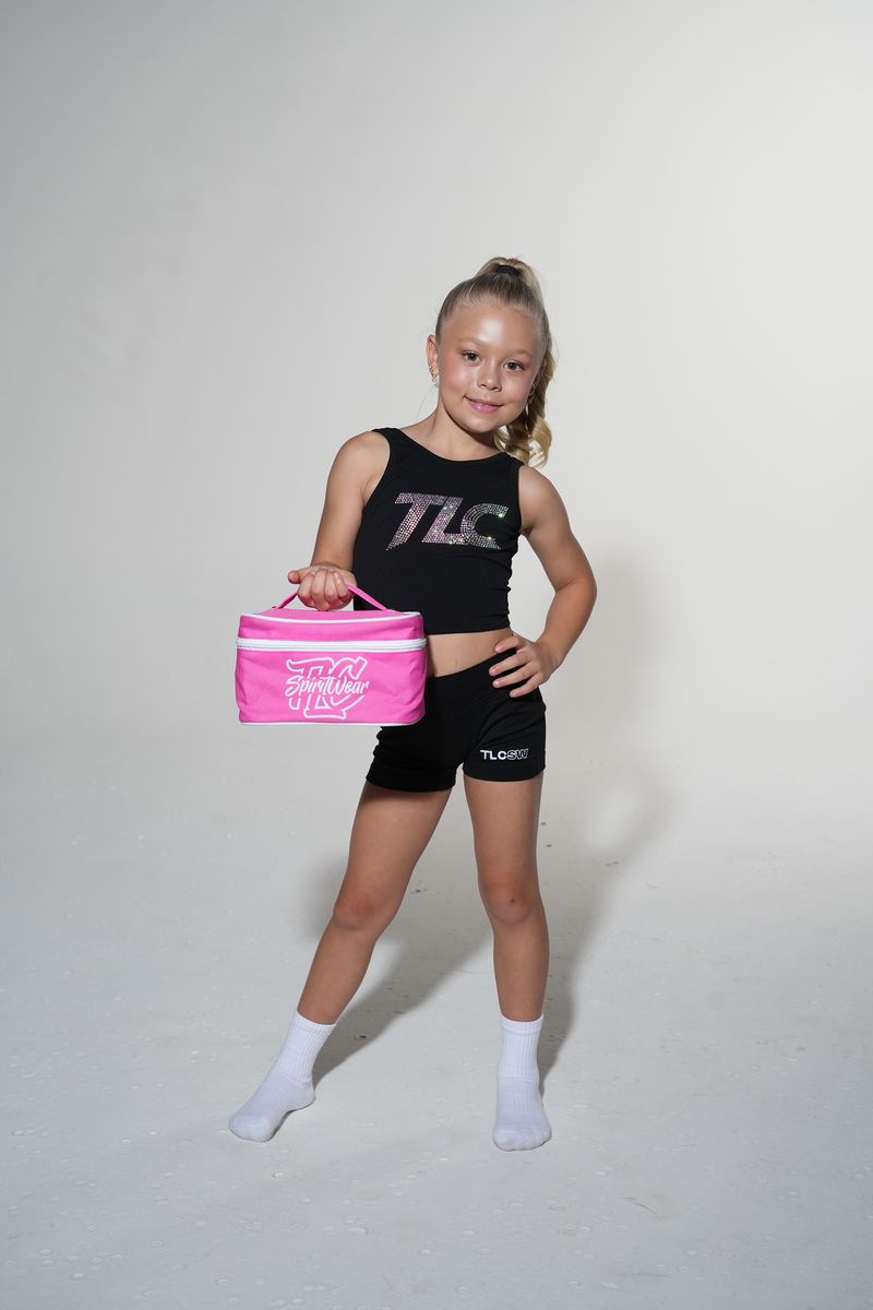See our sample make up bag customised to TLC Spirit Wear. We provide custom designs with personalised team, club, and athlete names!